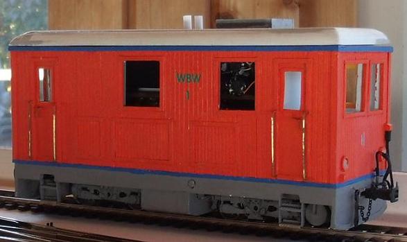 | Die Waldbahnloks 1 und 2, auch als die Zwillinge bezeichnet. Auch wenn die beiden kastenförmigen Maschinen vielleicht nicht die elegantesten sein mögen, so sind sie doch robuste und unverwüstliche Kraftprotze und das sind nun mal die Qualitäten, die im Alltag gebraucht werden. Hier sehen wir sie in der Fertigungshalle der FME (Fürstliche Manufaktur für Eisenbahnbedarf).Links auf dem Rollenprüfstand steht WB1 und rechts WB2 | |