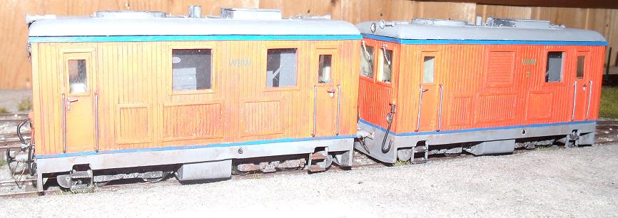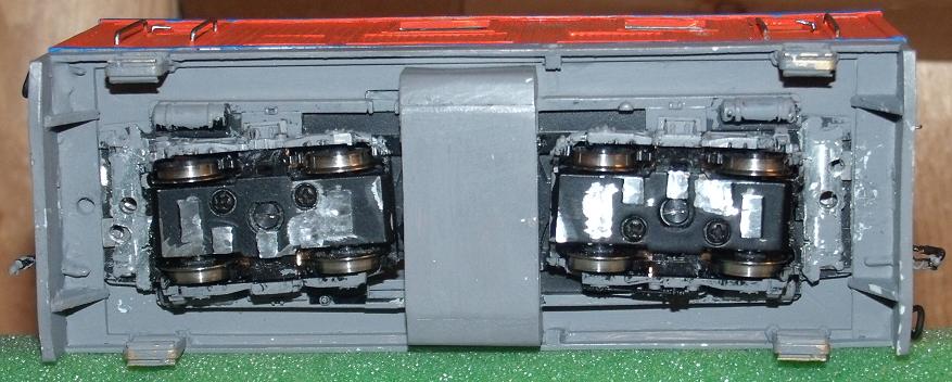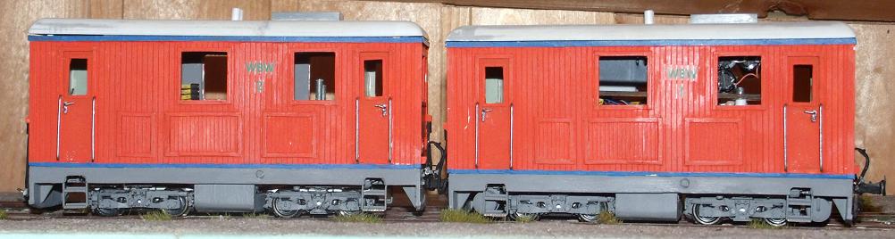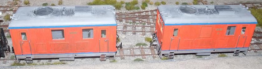 | Auf diesen Bildern ist jeweils links WB1 und rechts WB2 zu sehen. Man sieht das auch an der Anordnung der Bremsschläuche und der Dachaufbauten. Man kann hier auch gut sehen, daß ich jeweils auf unterschiedlichen Seiten ein Maschinenraumfenster verschlossen habe. Beide Loks sind unzwischen auf meine eigenen Mittelpuffer umgebaut. | |