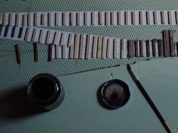 Hier werden die Schwellen gerade mit Beize gefärbt. |