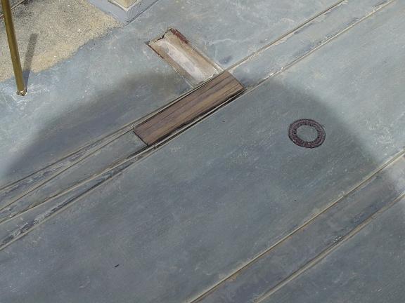 eine Abdeckung aus Brettern. Sehr gut kann man auch hier die Aussparung