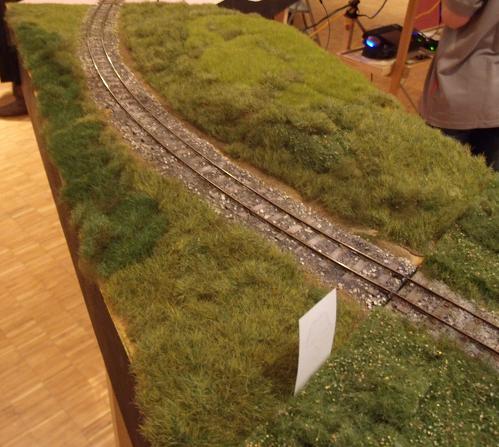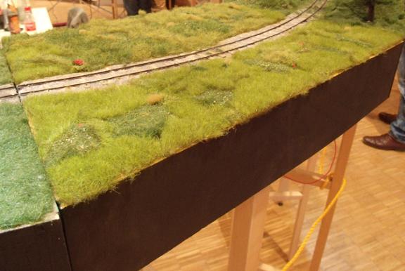 | Modul 2 Länge: 50 cm Breite: 30 cm Winkel; 5° Radius: 2,22 m (100 m in 1:1) Bogen mit Wiese, eben Fertig |