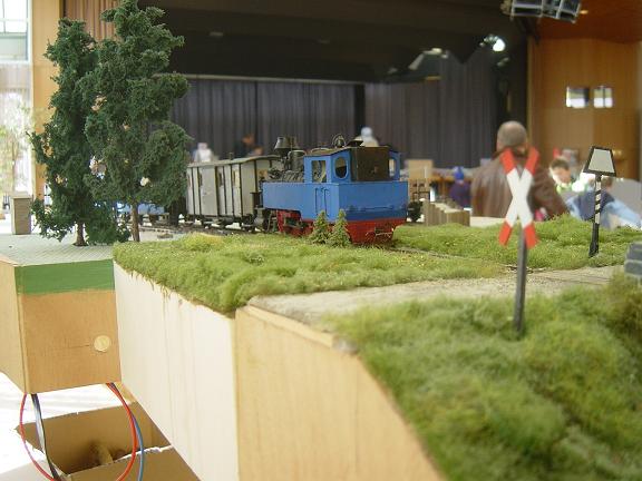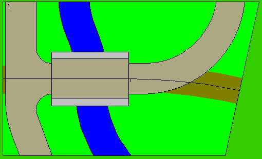 | Modul 1: Länge: 50 cm Breite: 30 cm Winkel; 12,5° Radius: 1 m (45m in 1:1) Bogen mit Brücke, die gemeinsam von Schiene und Straße genutzt wird. Fertig |