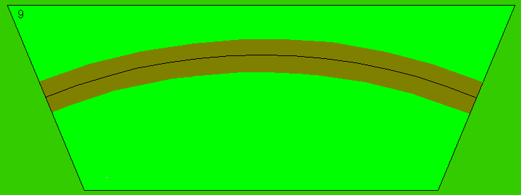 | Modul 4 Länge: 50 cm Breite: 30 cm Winkel; 25° Radius: 1 m (45m in 1:1) Bogen mit Wiese, eben Fertig |