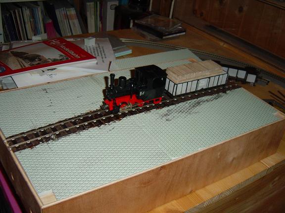 | Hier liegt schon mal das Gleis und die ersten Fahrzeuge können sich bereits darauf tummeln | |