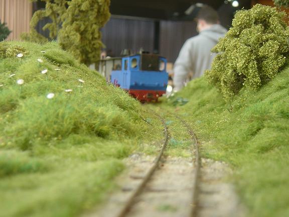 | Anschließend fährt der Zug durch einen engen und recht feuchten Einschnitt mit total verkrautetem Gleis. Da müßte mal wieder der Sprengwagen durchfahren und diesmal ohne Dünger ;-) | |
